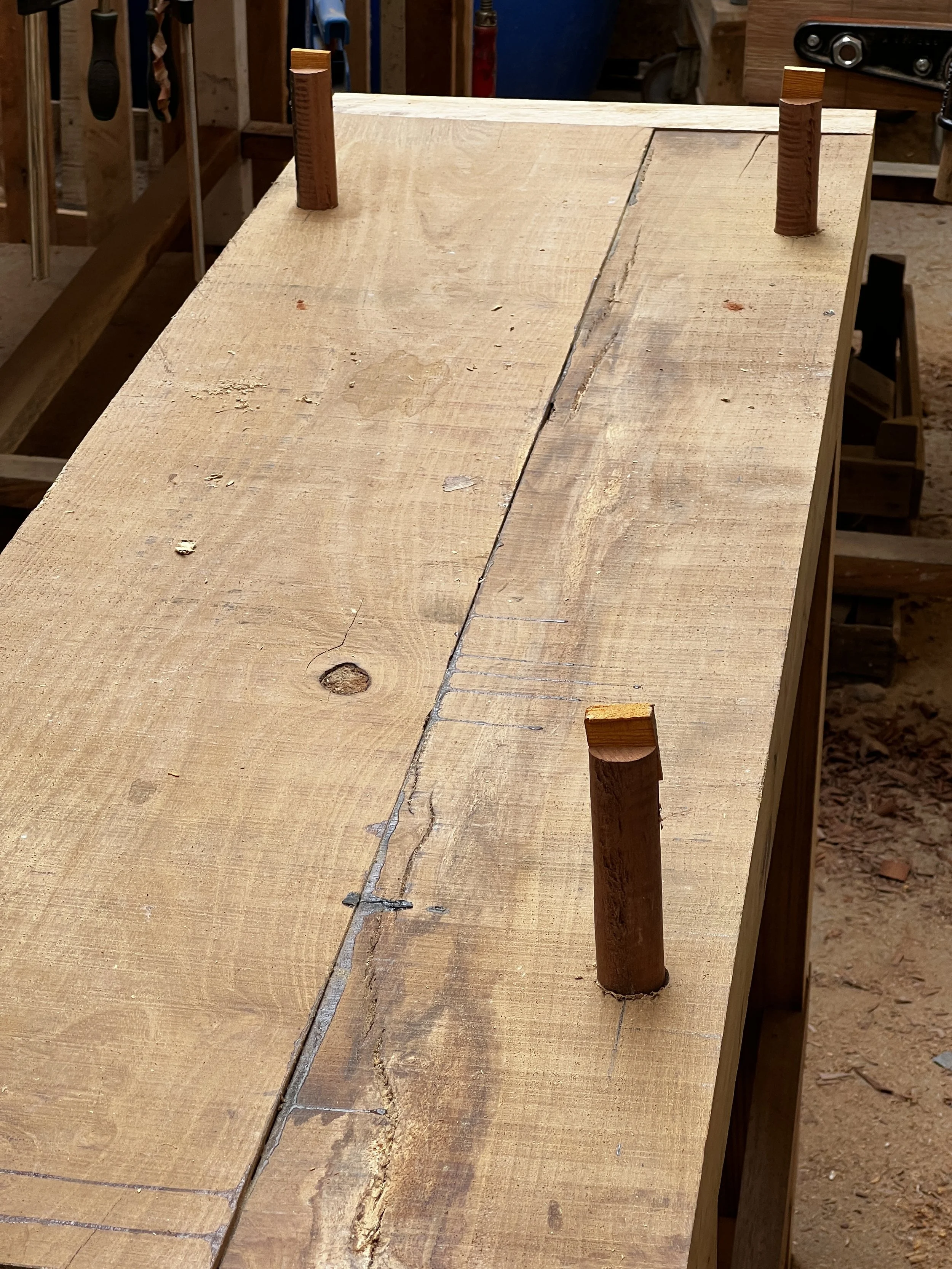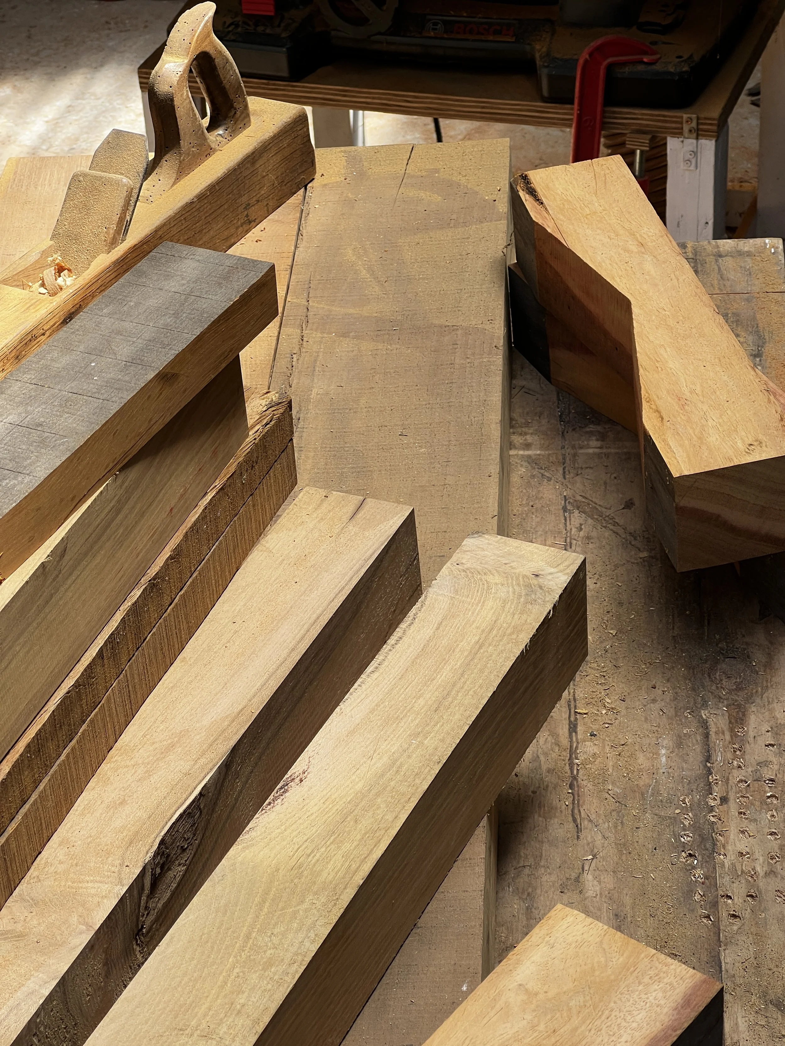 top/legs made from 8cm black locust salvaged from belas artes, struts/ends are iroko/oak from gondomar. features custom 30mm mahogany dowels. tung oil finish.